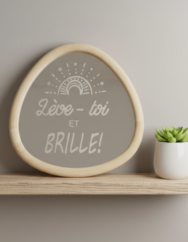 • Le combo gagnant : Ce modèle fait partie de notre collection de miroirs gravés. Mixez-le avec les modèles Power, L’Optimiste ou L’Essentiel pour créer un mur d’affirmations qui vous ressemble.