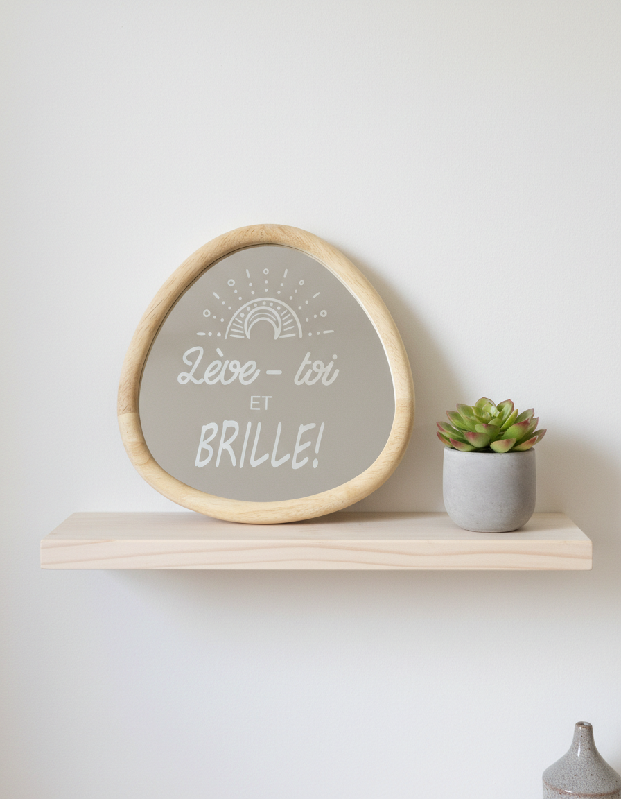 Pas de blabla, juste de l’énergie. Le miroir Booster est là pour une seule chose : vous mettre un coup de boost visuel dès que vous passez devant. Son mantra « Lève-toi et brille » est gravé au laser pour durer autant que vos ambitions. C’est l’objet qui transforme un mur vide en une source de motivation instantanée.